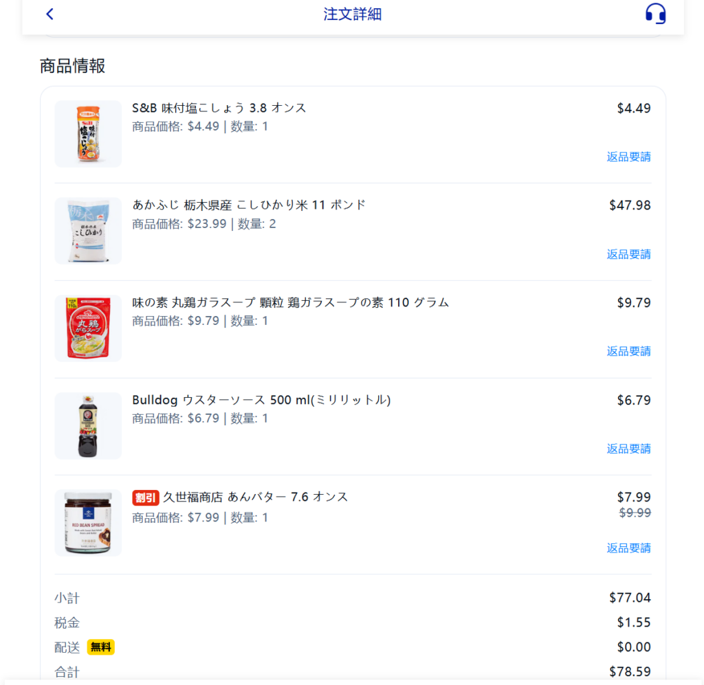 住んでいるエリアによっては、野菜や冷蔵・冷凍のものの取り扱いもあるようなのですが、私たちが住んでいるエリアは対象外でした・・・涙