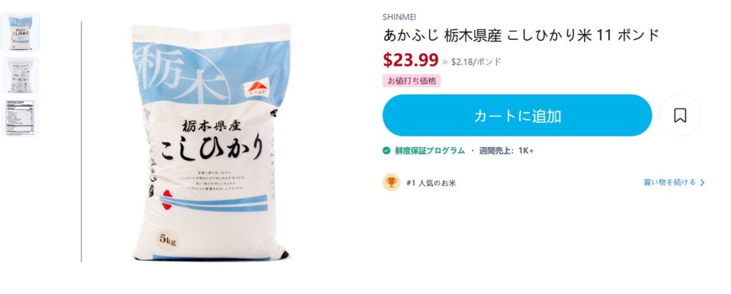Weee!でも人気商品のため、稀に欠品していることもあるので、お米の在庫がなくなりそうになる前に早めに注文しています!